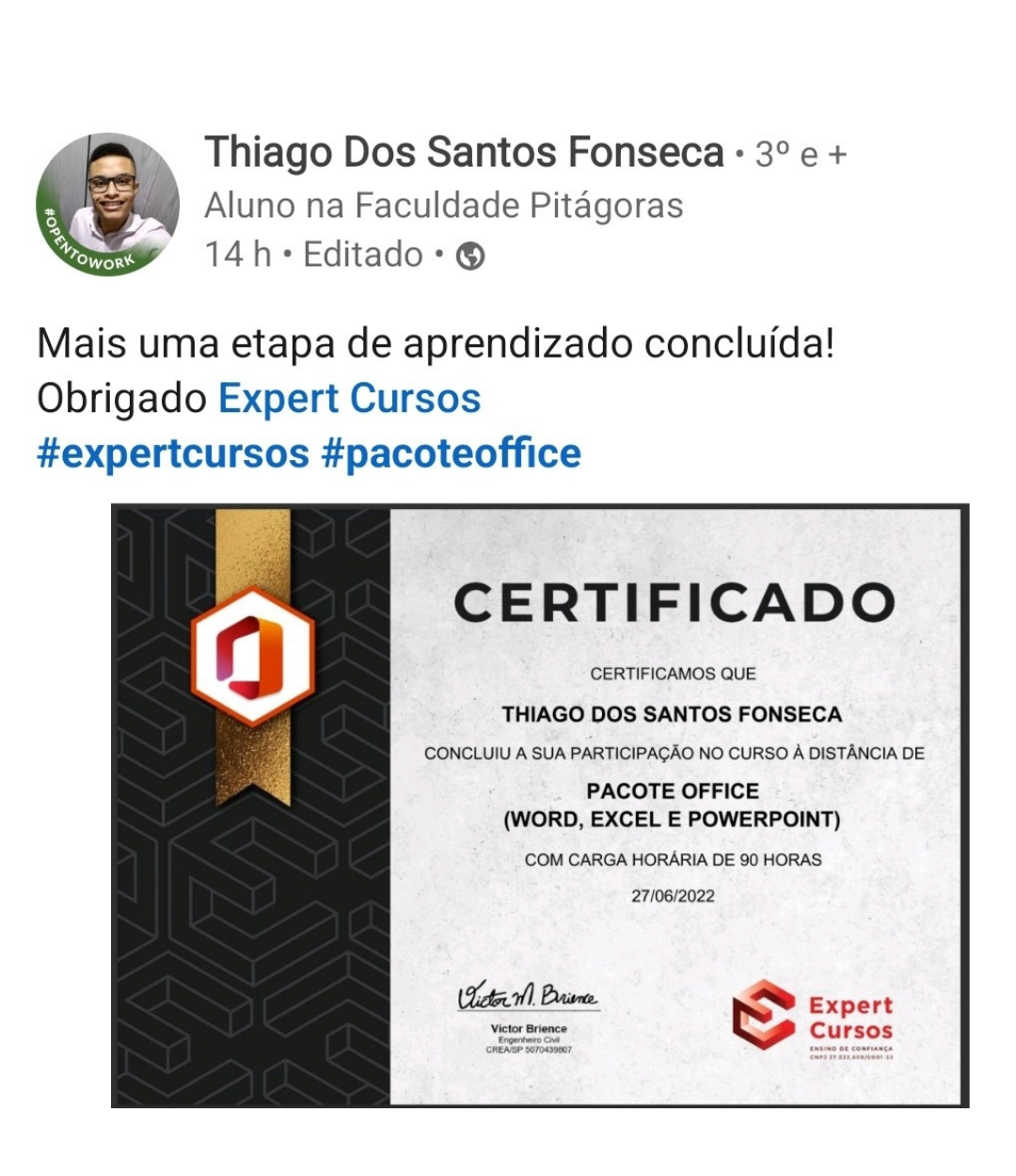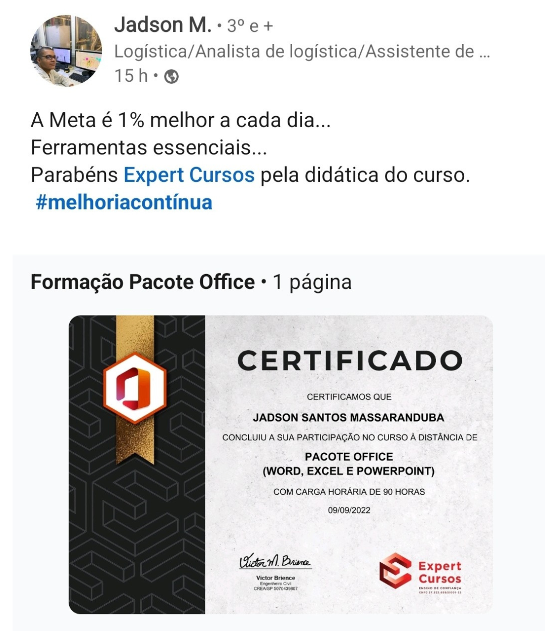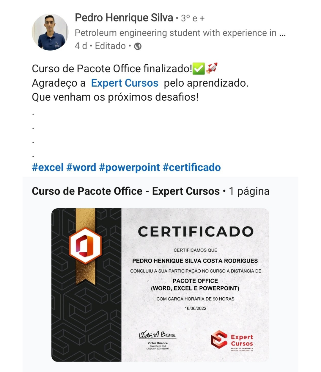 Este é o treinamento mais completo que vai te ensinar de maneira simples tudo o que você precisa saber para ter um nível avançado de Word, Excel e Power Point com Certificado Reconhecido.