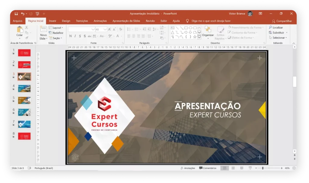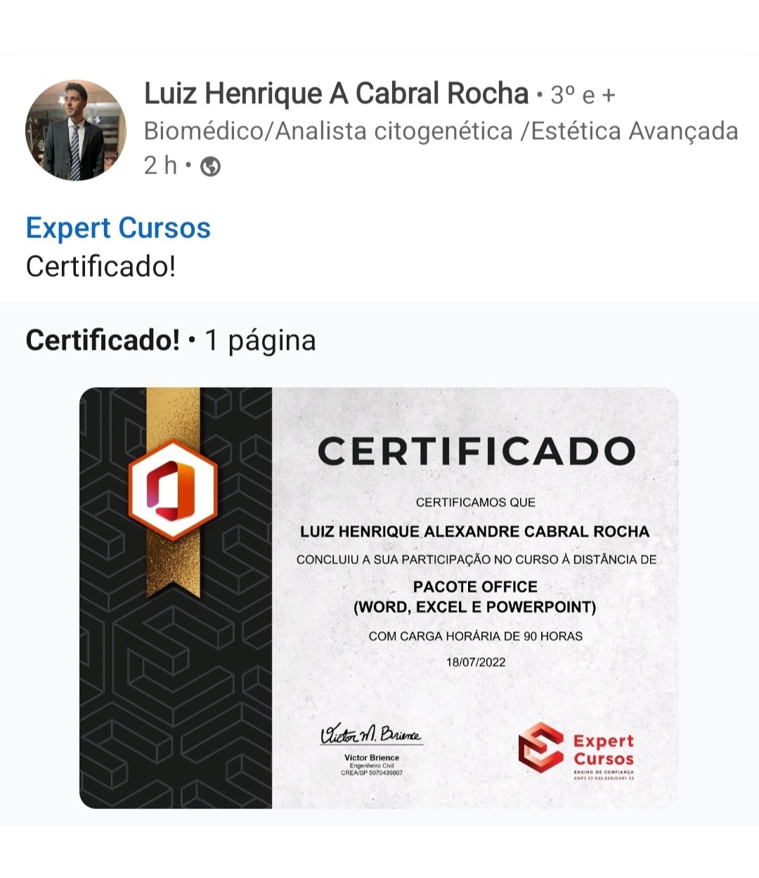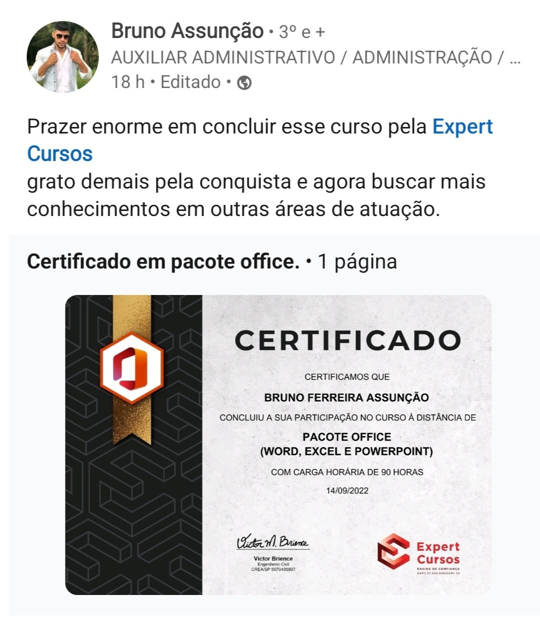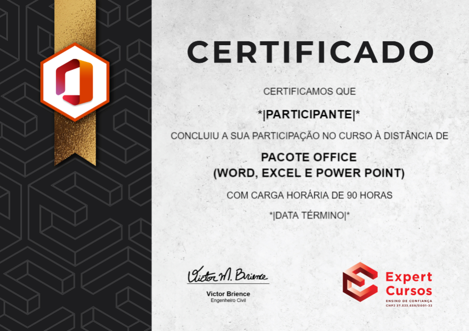 Victor, seu professor nesse curso, é engenheiro e especialista em Pacote Office e outros programas. Responsável por uma metodologia de aulas diretas, didáticas e com exercícios práticos para melhorar o aprendizado.